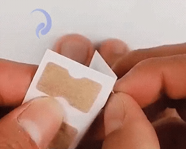3. Aplica el parche sobre la superficie de la uña y presiona firmemente con los dedos para asegurar que se adhiera bien.