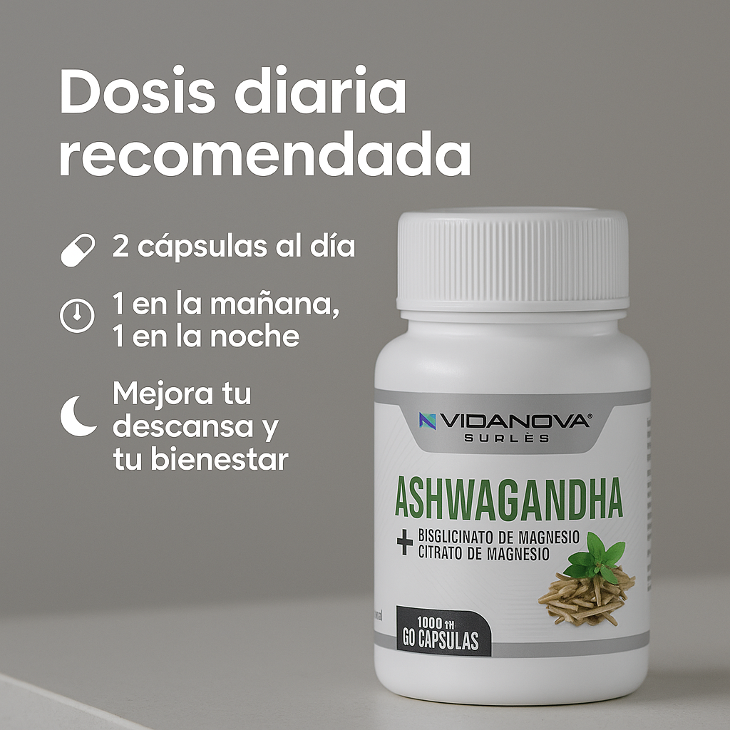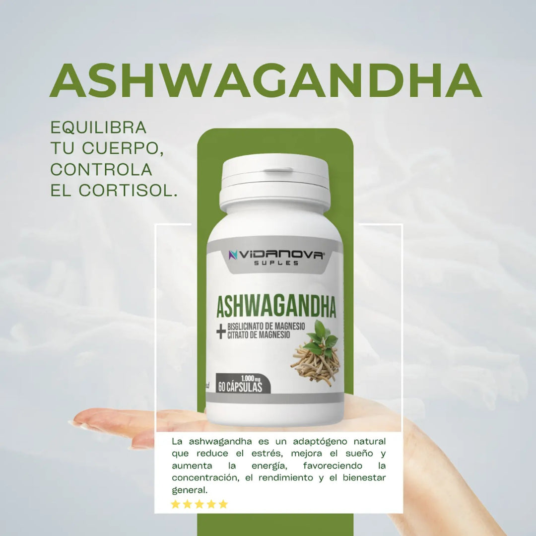 Ashwagandha + Magnesio 1000mg 60 CAPS Suplemento Natural – Reduce Estrés – Recupera tu Calma