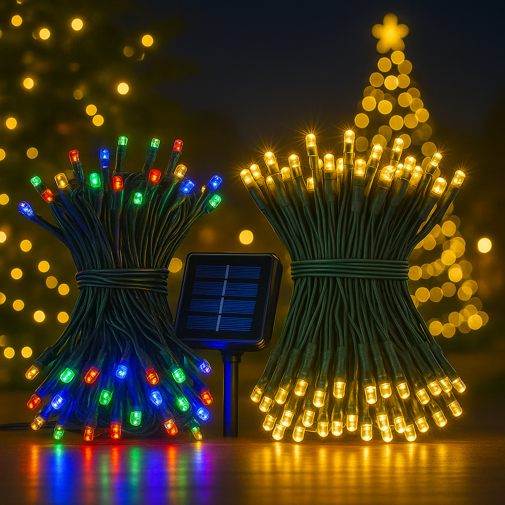 2X1 Luces Navideñas Solares 17 m – Ilumina tu hogar con energía solar y sin enchufes